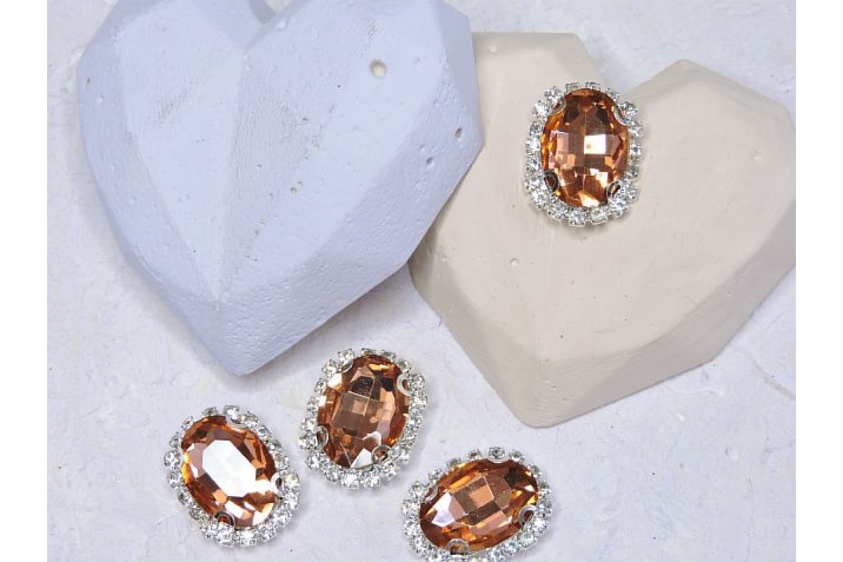 Страза пришившая в серебряной оправе 17*22 мм "Овал", цв. розовый персик - 1 шт.