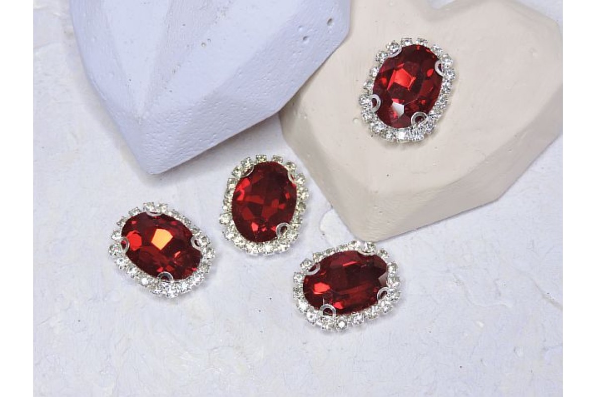Страза пришившая в серебряной оправе 17*22 мм "Овал", цв. темно-красный - 1 шт.