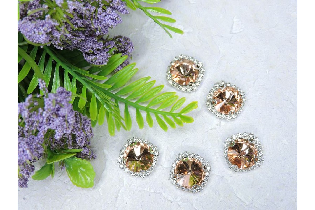 Страза пришившая в серебряной оправе 18 мм "Круг", цв. розовый персик - 1 шт.