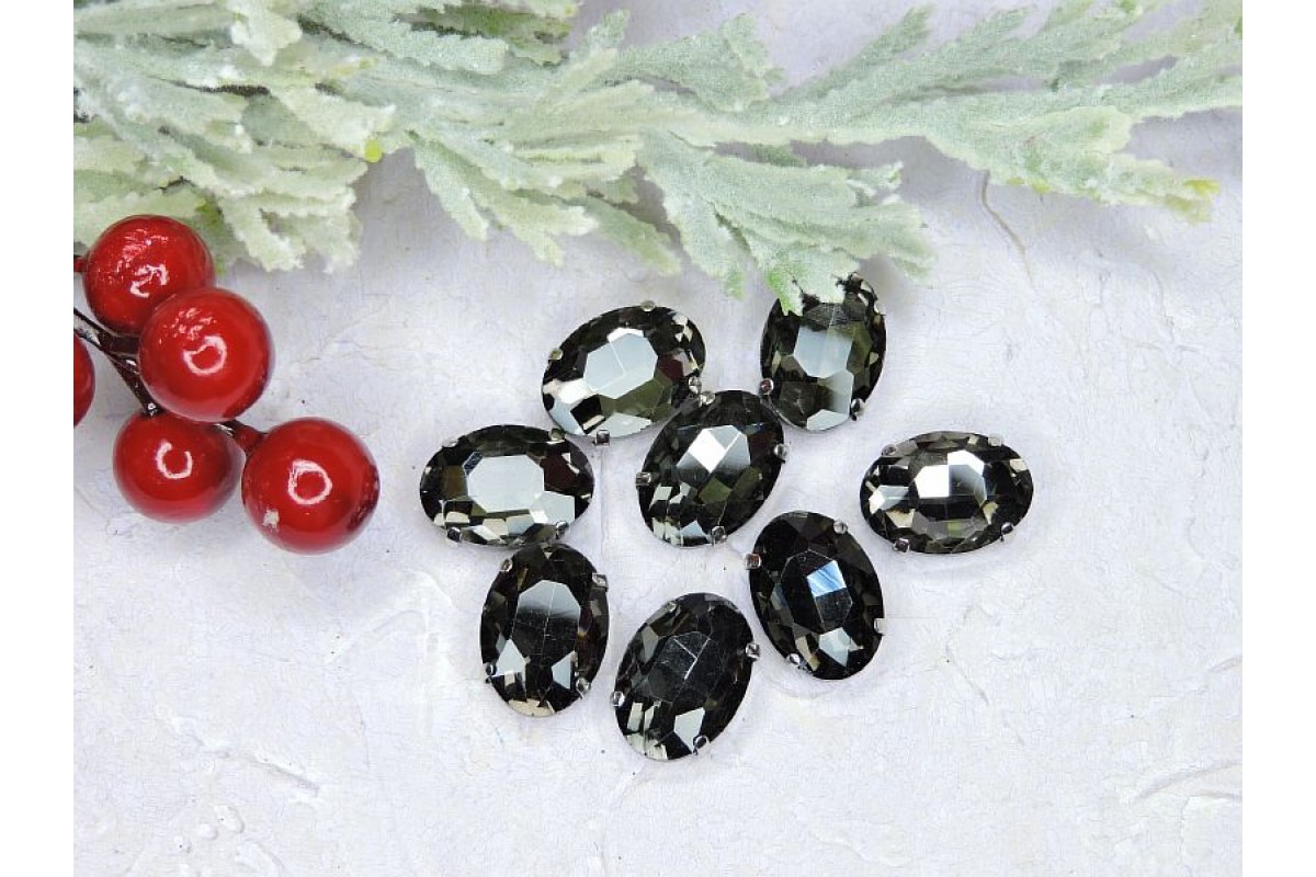 Стразы пришивные 18 мм "Овал", цв. графитовый - 1 шт.