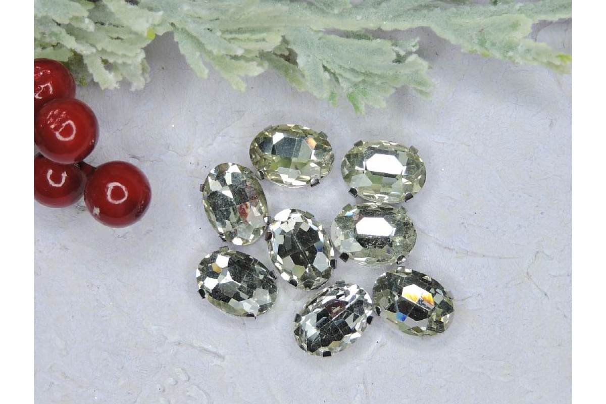 Стразы пришивные 18 мм "Овал", цв. серебро - 1 шт.