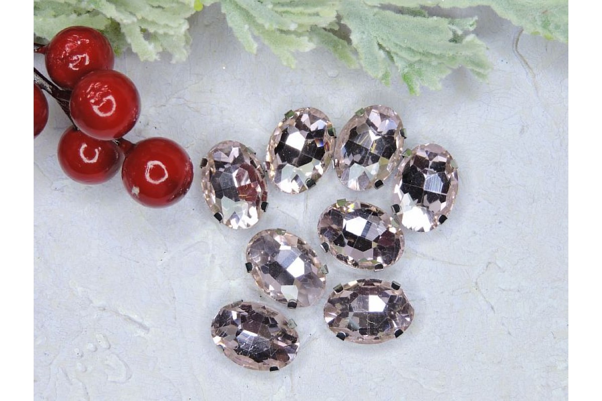 Стразы пришивные 18 мм "Овал", цв. светло-розовый - 1 шт., 251-299, Китай, Стразы, ювелирные серединки, кабошоны. Основа металл