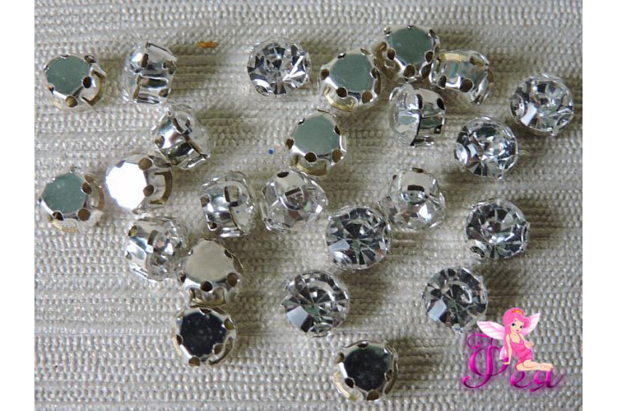 Стразы в оправе 7 мм, серебро (уп 10 шт)