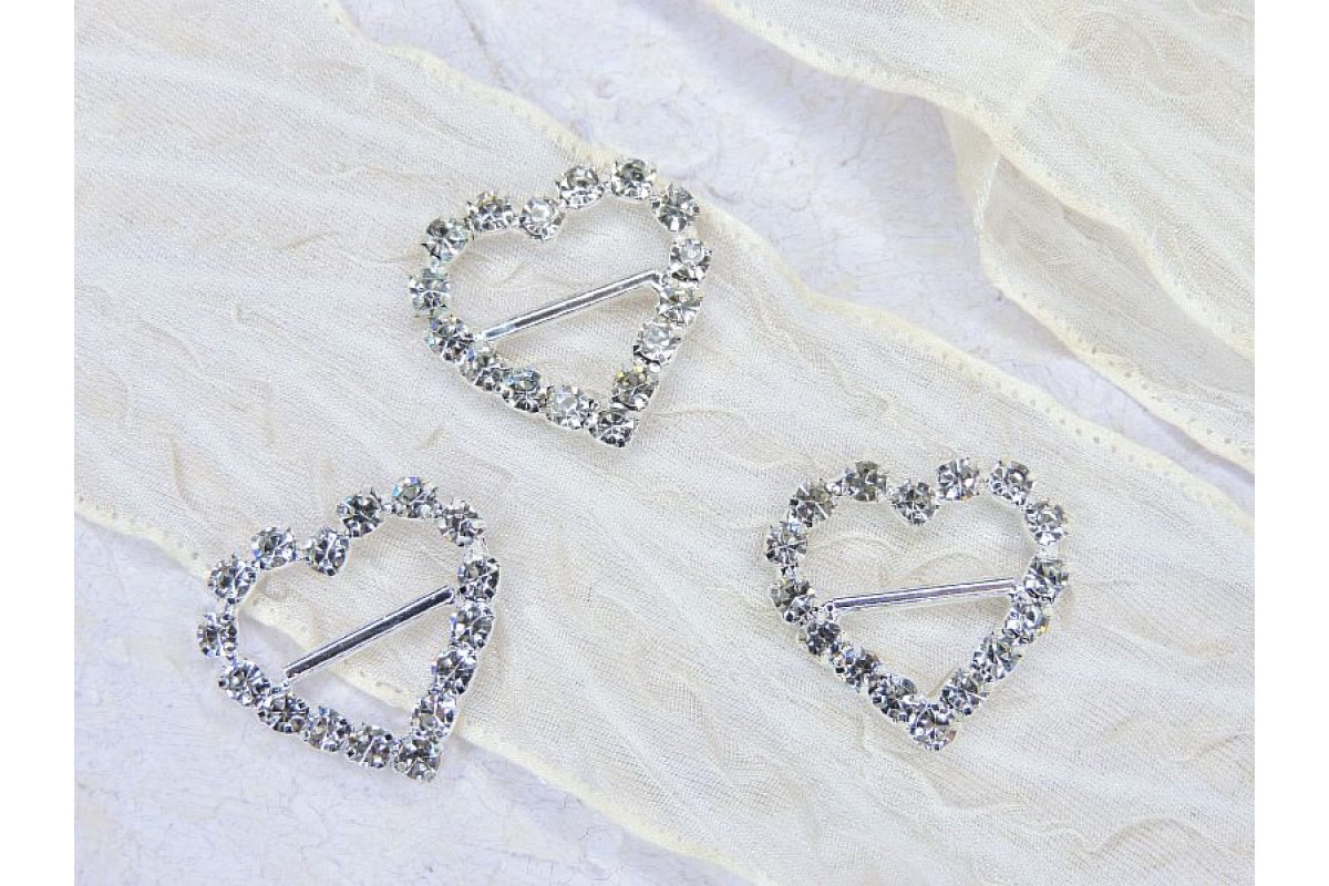 11342, Пряжка со стразами "Сердечко", металл, цв. серебро - 1 шт., , 2.10BYN, 258-807, Китай, Стразы, ювелирные серединки, кабошоны. Основа металл