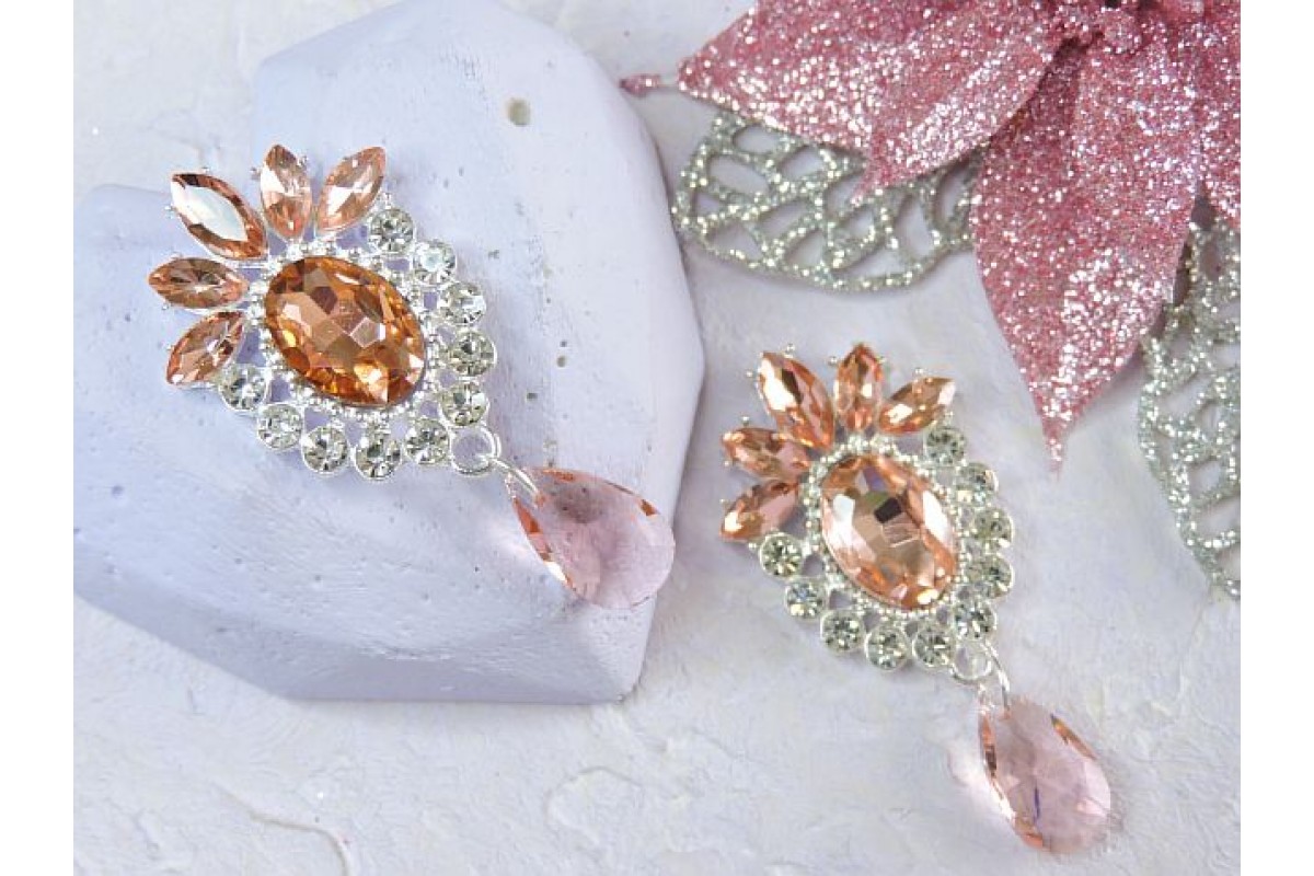 Серединка ювелирная с подвеской, цв. серебро/персиковый - 1 шт., 258-627 н, Китай, Стразы, ювелирные серединки, кабошоны. Основа металл