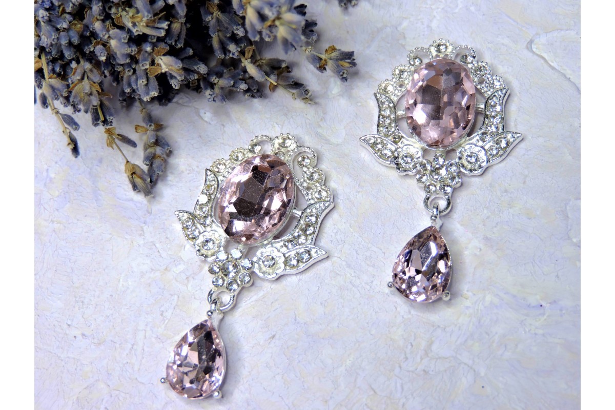 Серединка ювелирная с подвеской, цв. светло-розовый №13 - 1 шт., 258-787нов, Китай, Стразы, ювелирные серединки, кабошоны. Основа металл