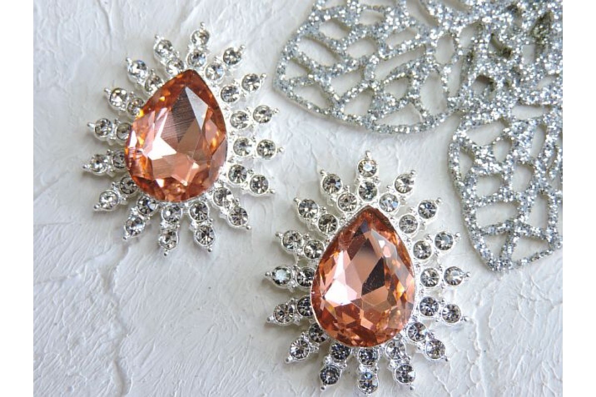 Серединка ювелирная, цв. серебро/персиковый - 1 шт, 258-612 н, Китай, Стразы, ювелирные серединки, кабошоны. Основа металл