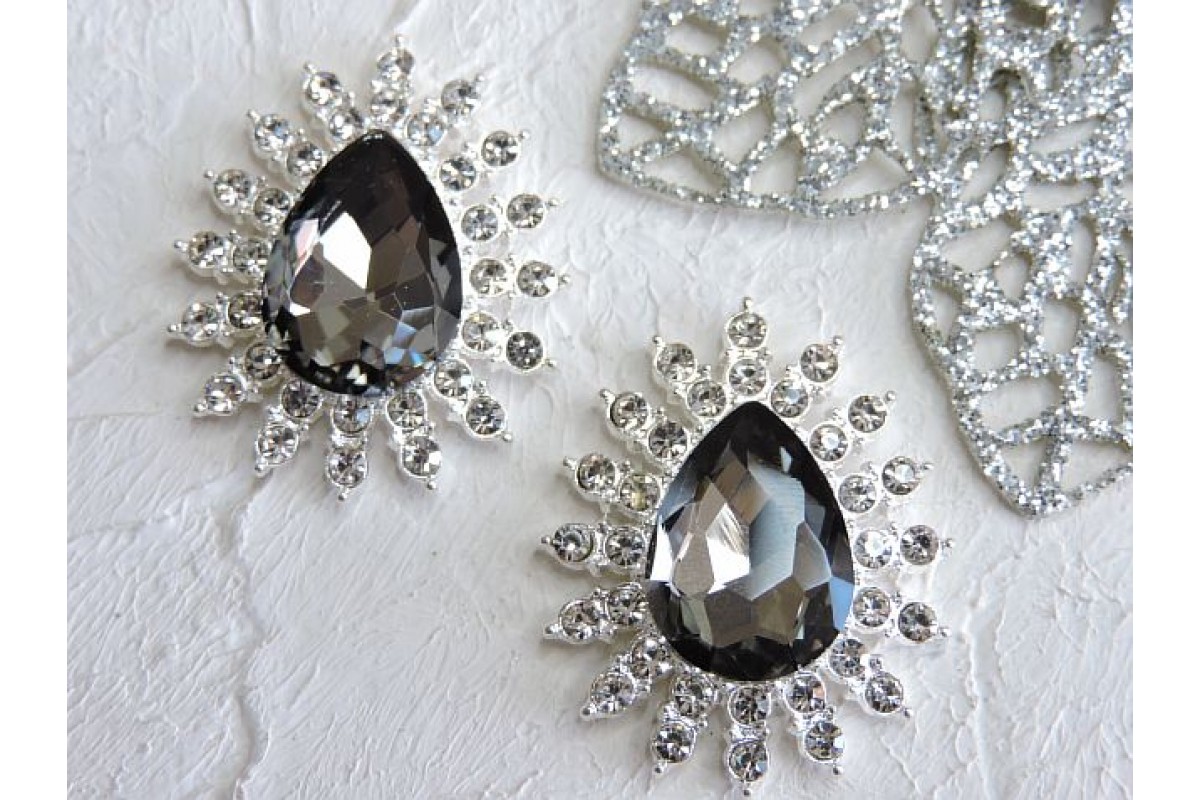 Серединка ювелирная, цв. серебро/графитовый - 1 шт, 258-611 н, Китай, Стразы, ювелирные серединки, кабошоны. Основа металл