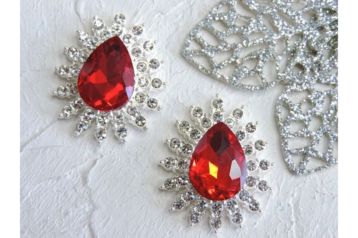 Серединка ювелирная, цв. серебро/красный - 1 шт, 258-621 н, Китай, Стразы, ювелирные серединки, кабошоны. Основа металл