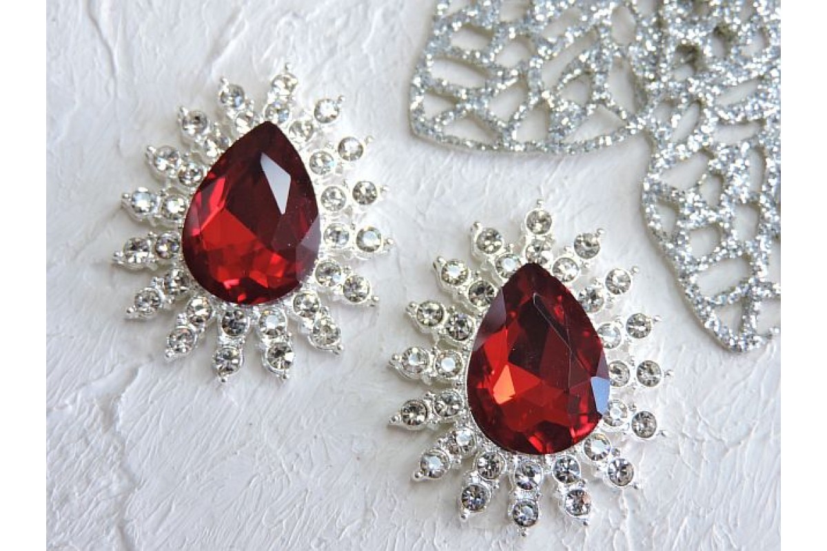 Серединка ювелирная, цв. серебро/бордовый - 1 шт, 258-609, Китай, Стразы, ювелирные серединки, кабошоны. Основа металл