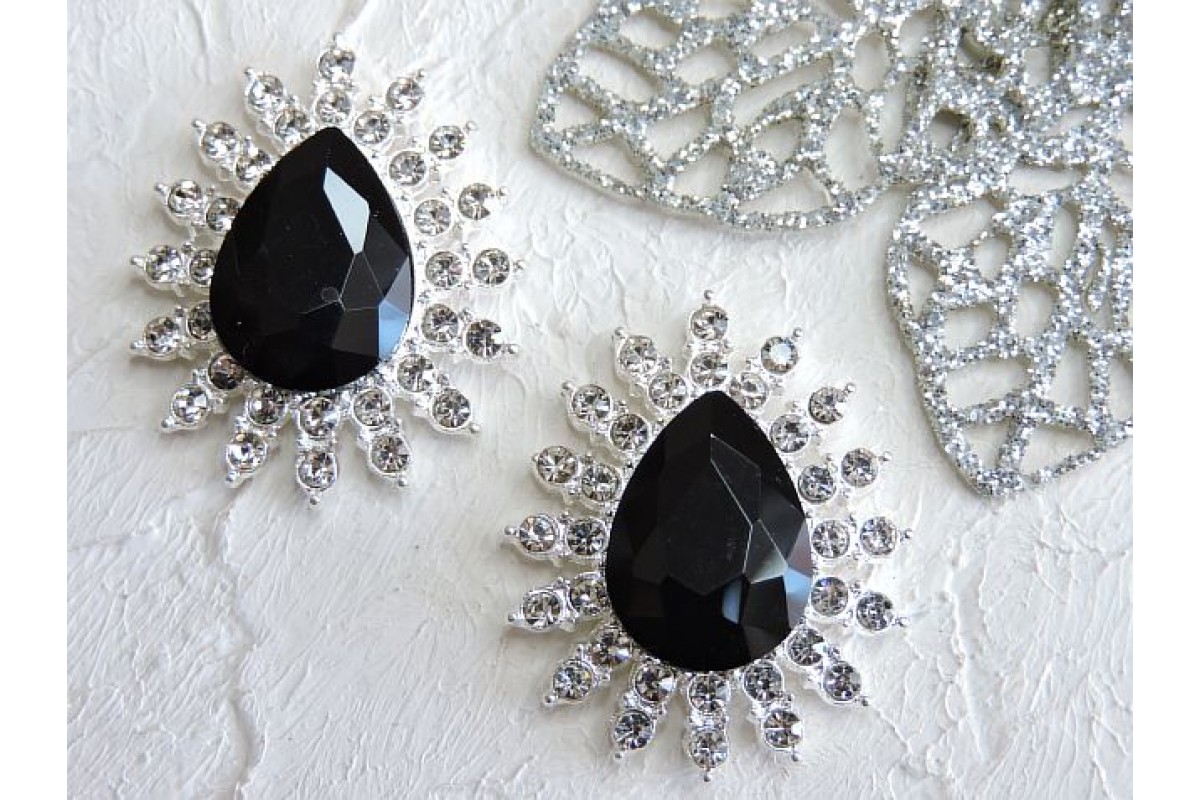 Серединка ювелирная, цв. серебро/черный - 1 шт, 258-613 н, Китай, Стразы, ювелирные серединки, кабошоны. Основа металл
