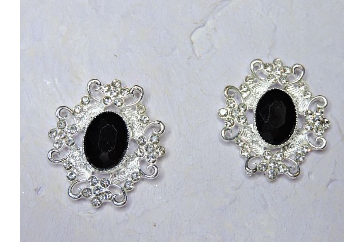 Серединка ювелирная, цв. серебро/черный - 1 шт, 258-536 н, Китай, Стразы, ювелирные серединки, кабошоны. Основа металл