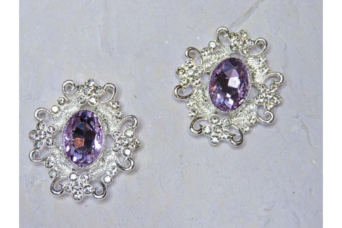 Серединка ювелирная, цв. серебро/фиолетовый - 1 шт, 258-533 н, Китай, Стразы, ювелирные серединки, кабошоны. Основа металл