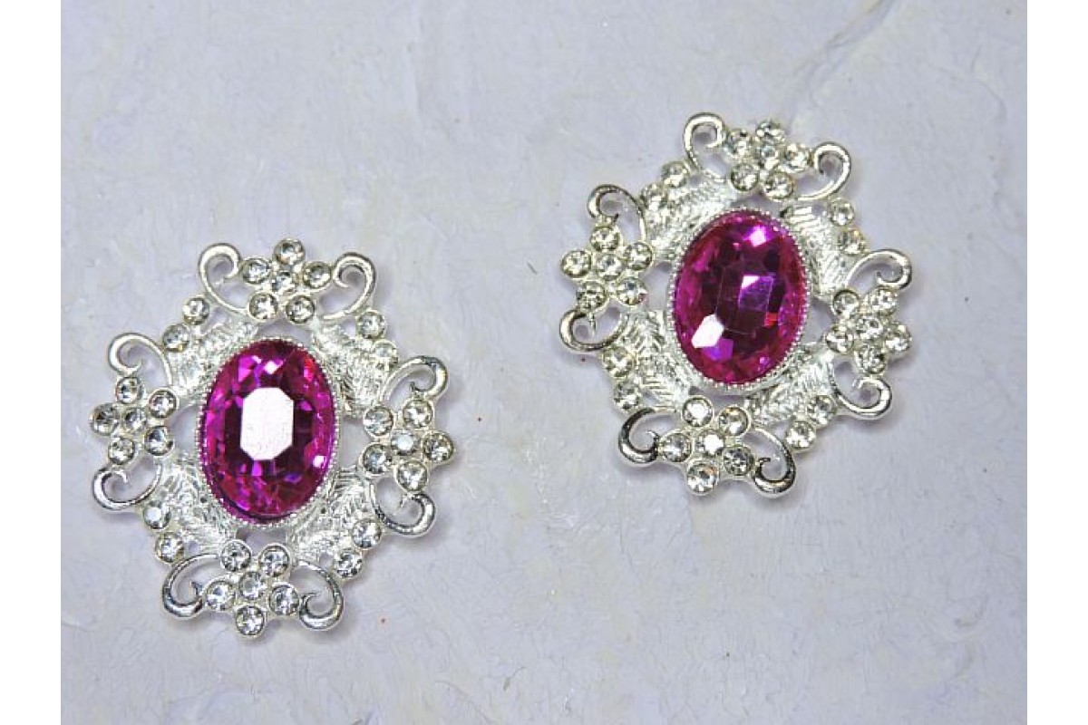 Серединка ювелирная, цв. серебро/фукси - 1 шт, 258-534 н, Китай, Стразы, ювелирные серединки, кабошоны. Основа металл