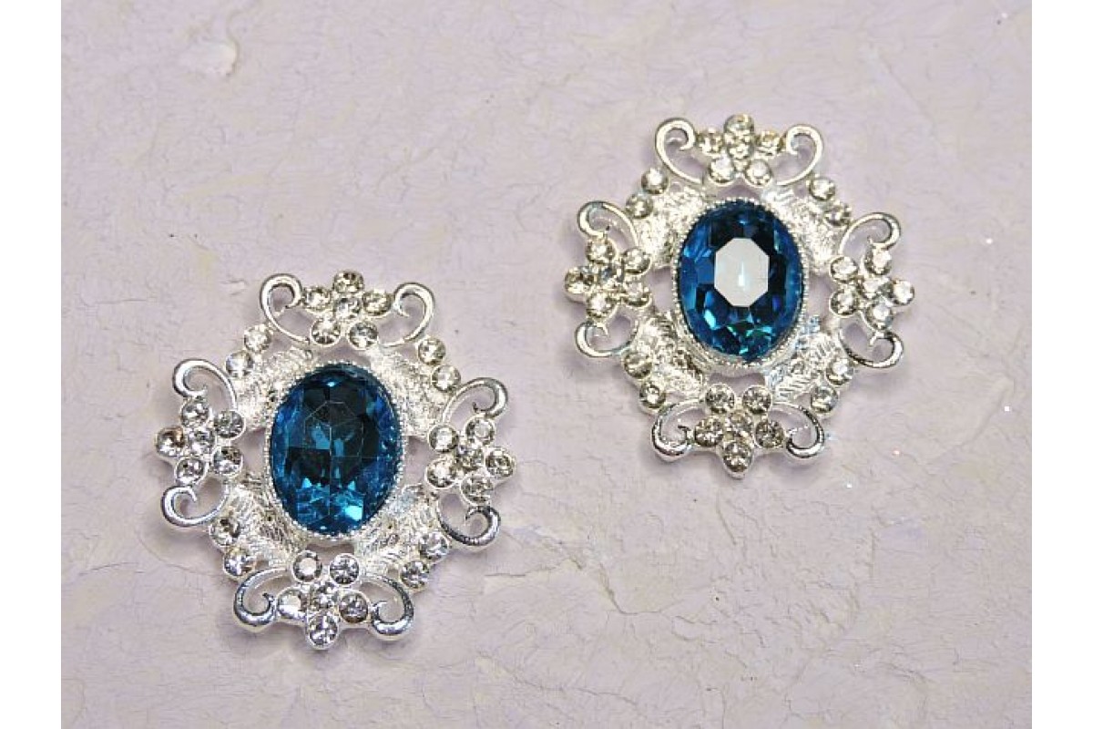 Серединка ювелирная, цв. серебро/голубой - 1 шт, 258-517 н, Китай, Стразы, ювелирные серединки, кабошоны. Основа металл