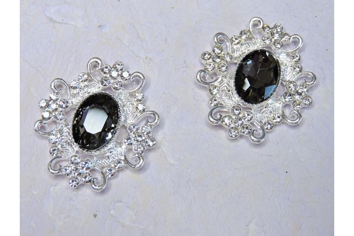 Серединка ювелирная, цв. серебро/графитовый - 1 шт, 258-518 н, Китай, Стразы, ювелирные серединки, кабошоны. Основа металл
