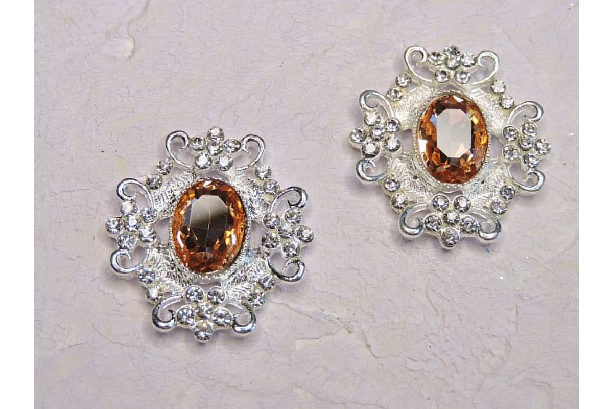 Серединка ювелирная, цв. серебро/персиковый - 1 шт, 258-524 н, Китай, Стразы, ювелирные серединки, кабошоны. Основа металл