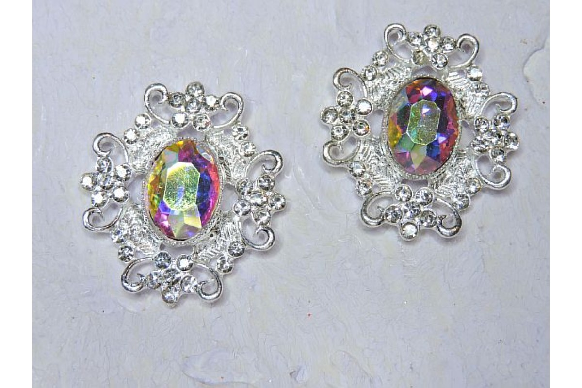 Серединка ювелирная, цв. серебро/серебро радужное - 1 шт, 258-528 н, Китай, Стразы, ювелирные серединки, кабошоны. Основа металл