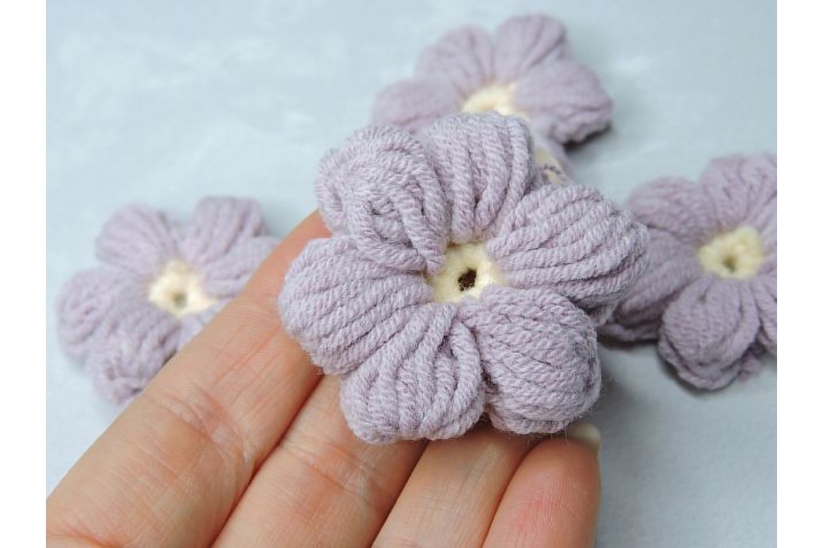 Цветочек вязанный 4 см, цв. пыльно-сиреневый - 1 шт., 19-225, Россия, Вязаные элементы