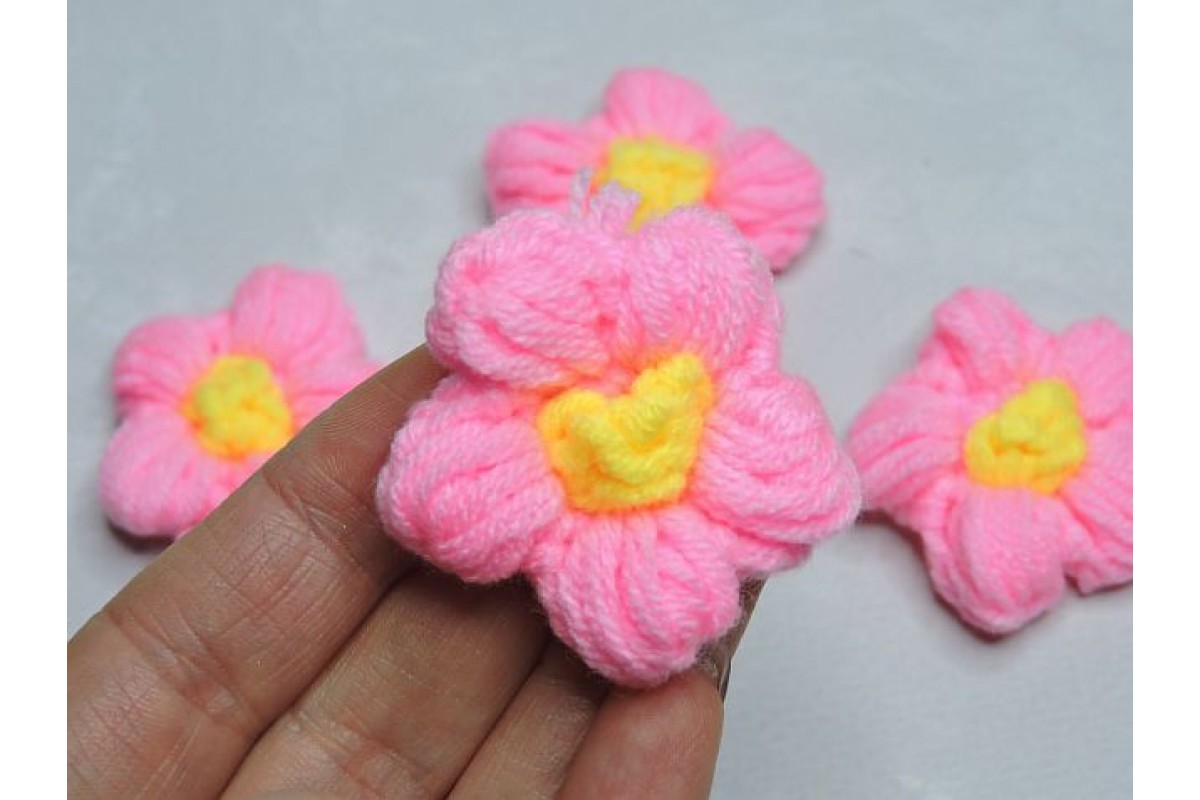 Цветочки вязанные 4,5 см, цв. ярко-розовый - 1 шт.