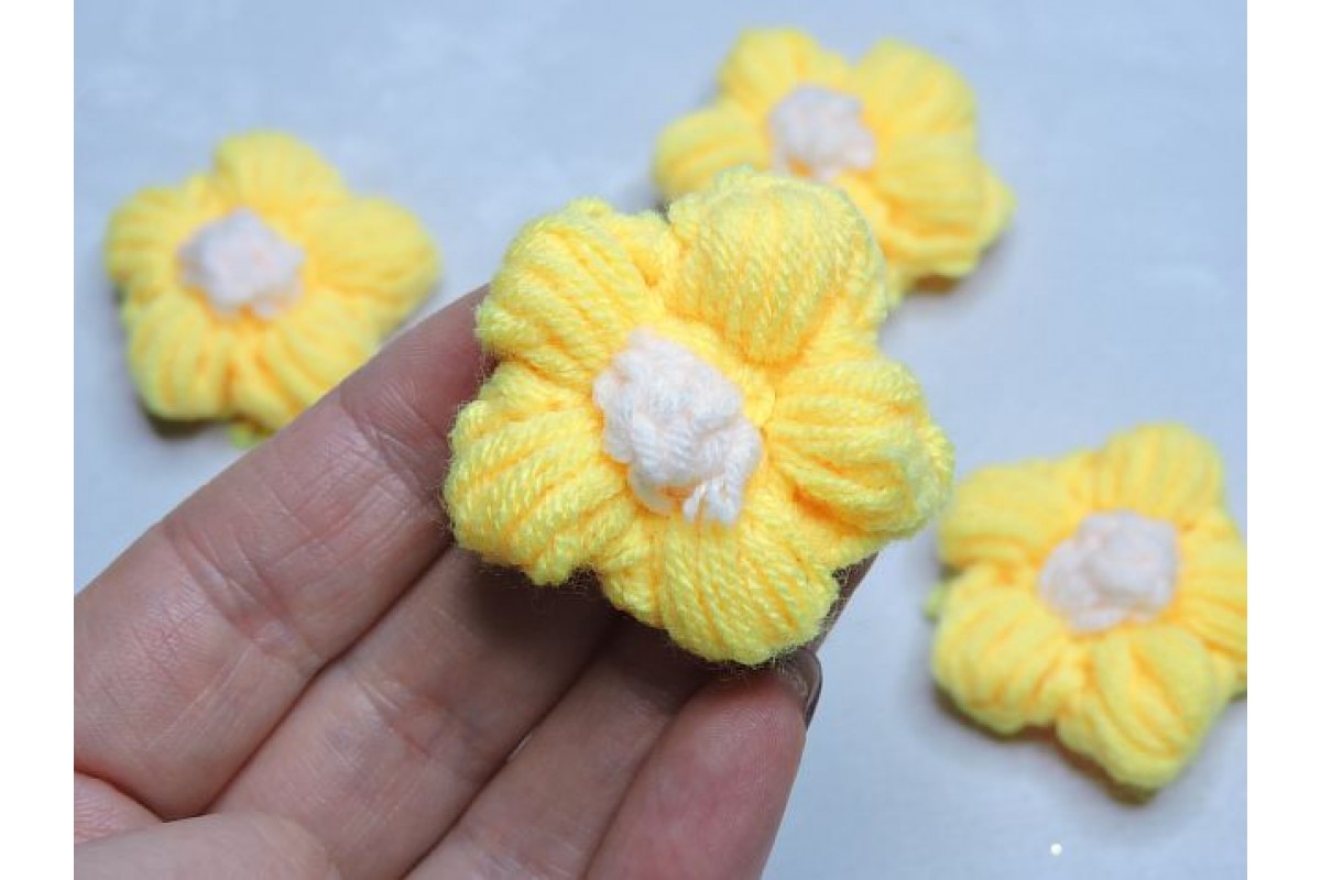 Цветочки вязанные 4,5 см, цв. желтый - 1 шт.
