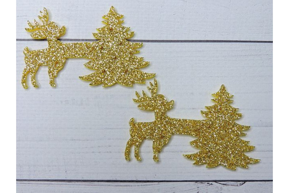 Лазерная вырубка из глиттерного фетра "Елочка и олень" - 1 шт., 253-232 нов, Россия, Заготовки из фоамирана и кожзама