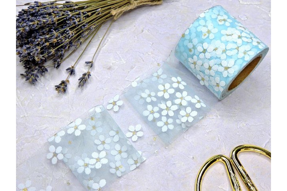 Фатин 5, 5 см "Ромашки", цв. голубой - 1 м., 803-584, Китай, 5 см