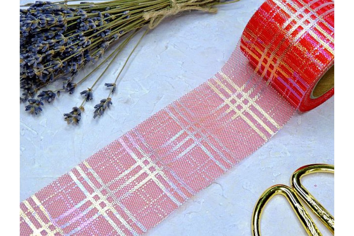 Фатин 5,5 см "Узор", цв. красный - 1 м.