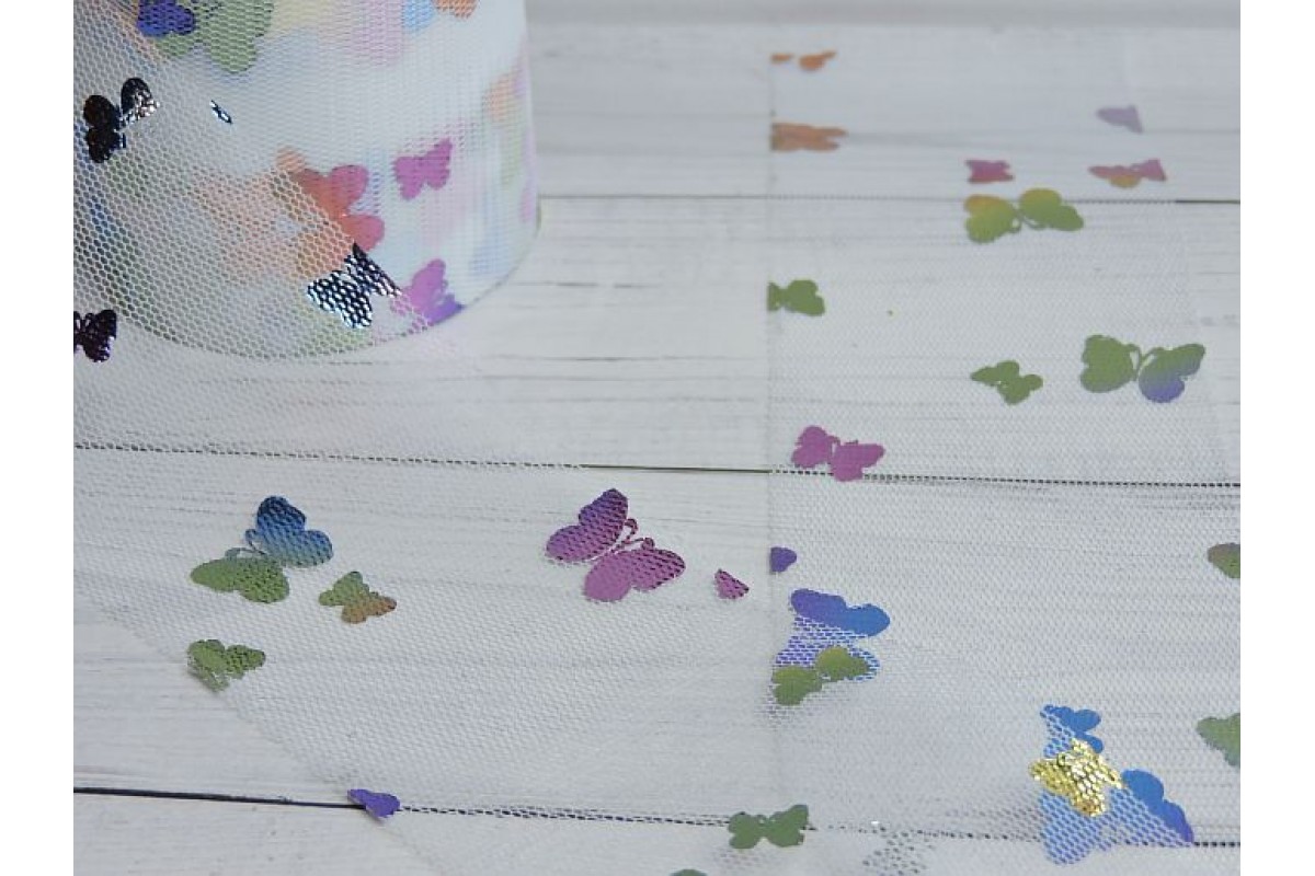 Фатин "Бабочки" 5, 5 см, цв. белый - 1 м., 803-549 но, Китай, Фатин 5
