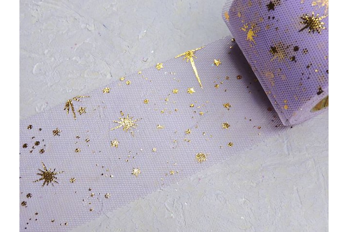 Фатин "Фейерверк" 5,5 см, цв. фиолетовый/золото- 1 м.
