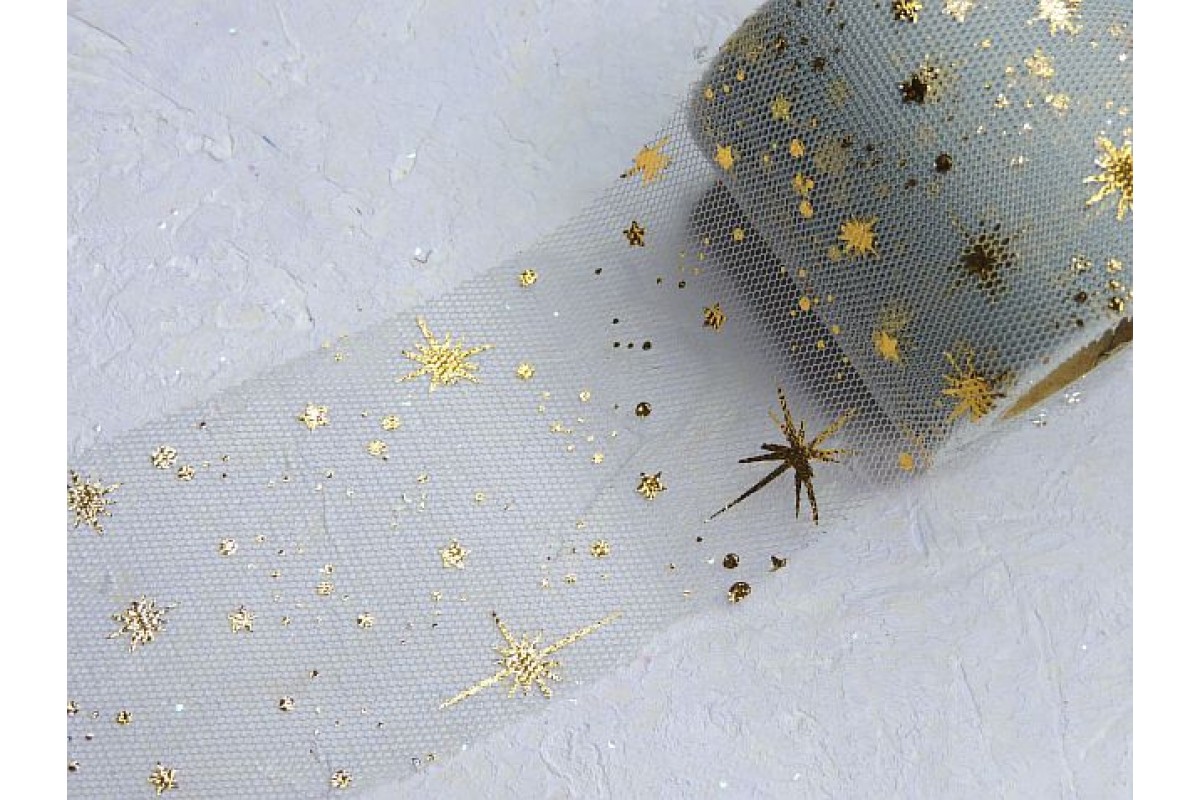 Фатин "Фейерверк" 5, 5 см, цв. серый/золото- 1 м., 803-490, Китай, Фатин 5