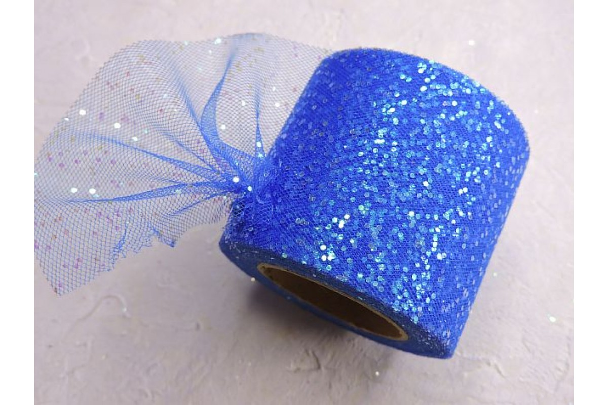 Фатин с блестками 5, 5 см, цв. синий - 1 м., 803-436, Китай, Фатин 5