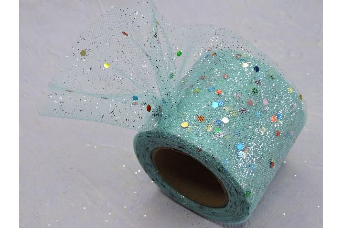 Фатин с блестками и пайетками 5,5 см, цв. аквамариновый - 1 м.