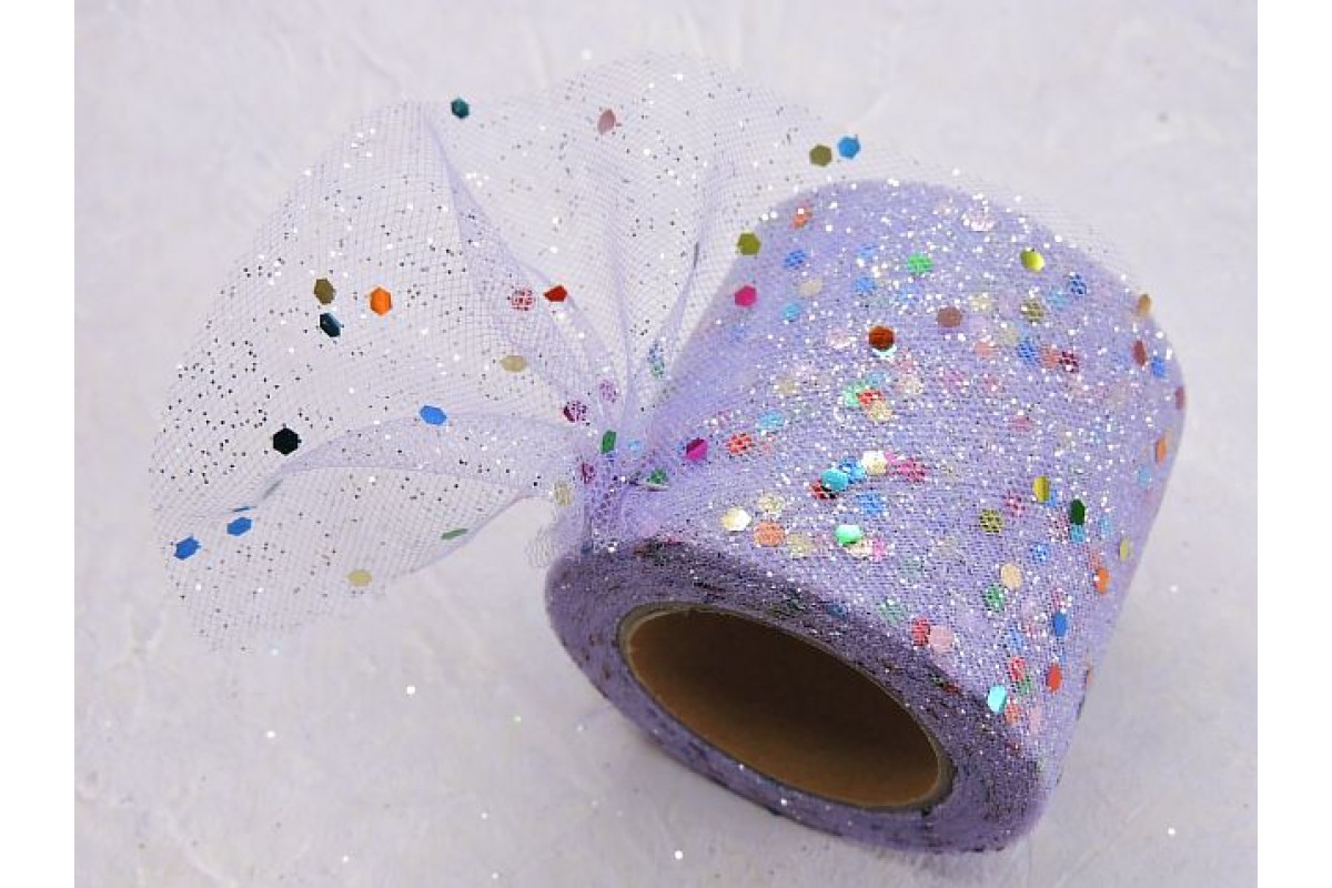 Фатин с блестками и пайетками 5,5 см, цв. фиолетовый - 1 м.