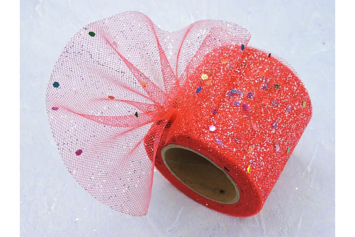 Фатин с блестками и пайетками 5,5 см, цв. красный - 1 м.