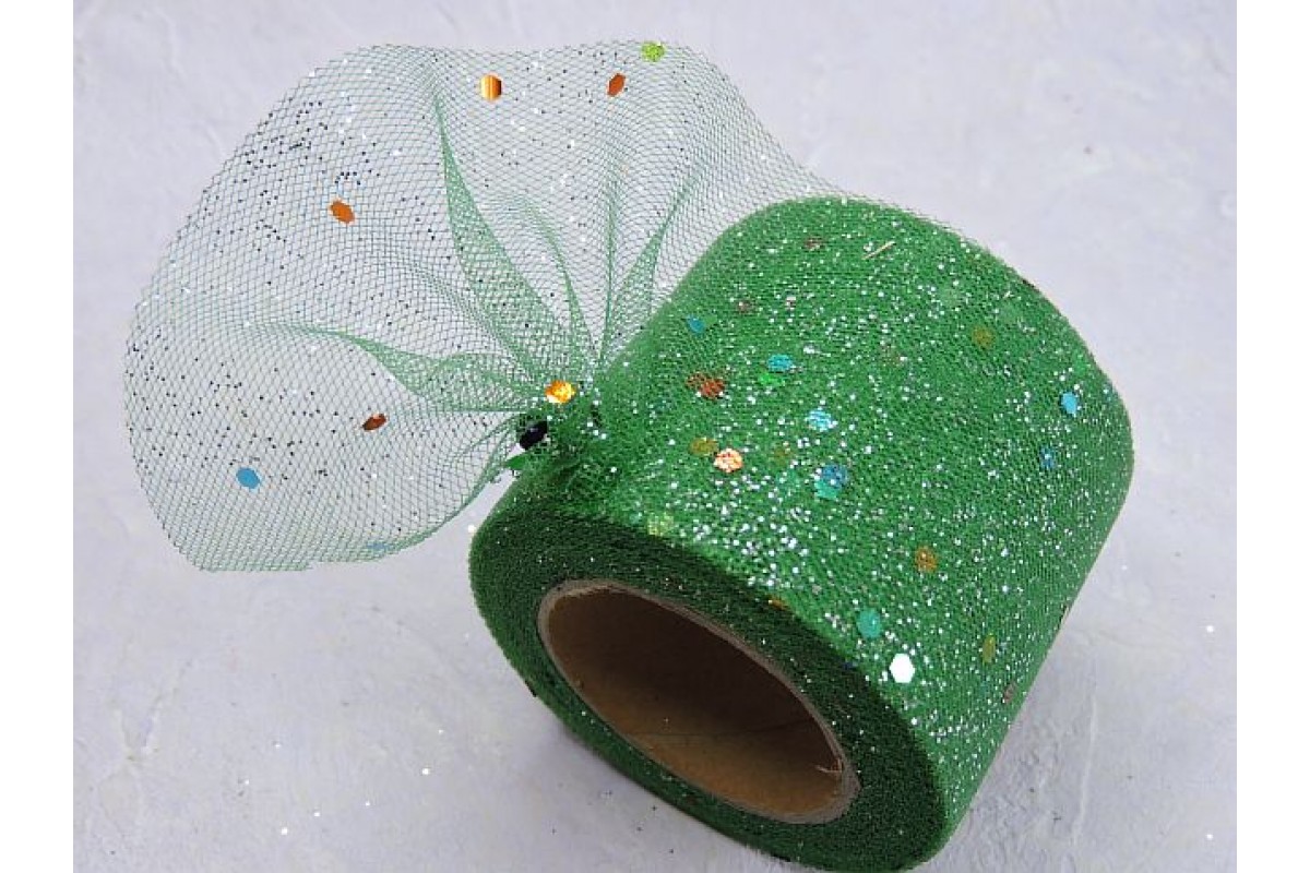 Фатин с блестками и пайетками 5, 5 см, цв. темно-зеленый - 1 м., 803-457, Китай, Фатин 5