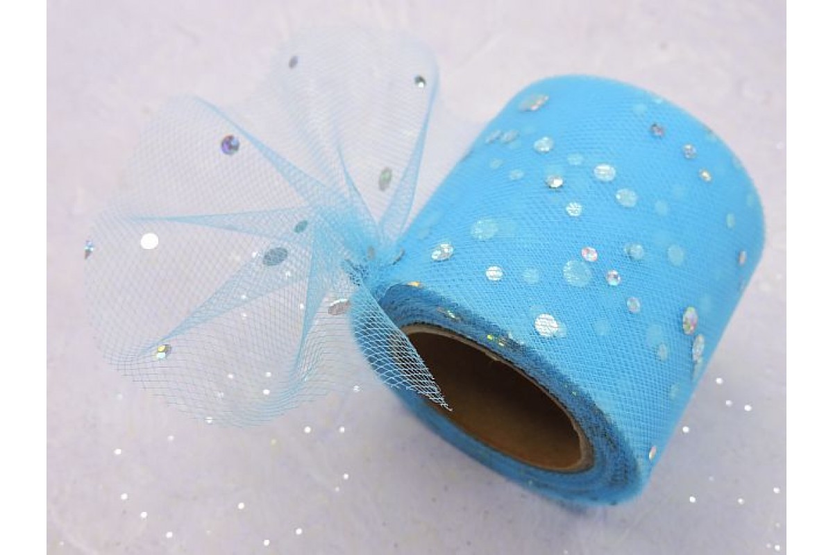 Фатин с пайетками 5, 5 см, цв. голубой - 1 м., 803-442, Китай, Фатин 5