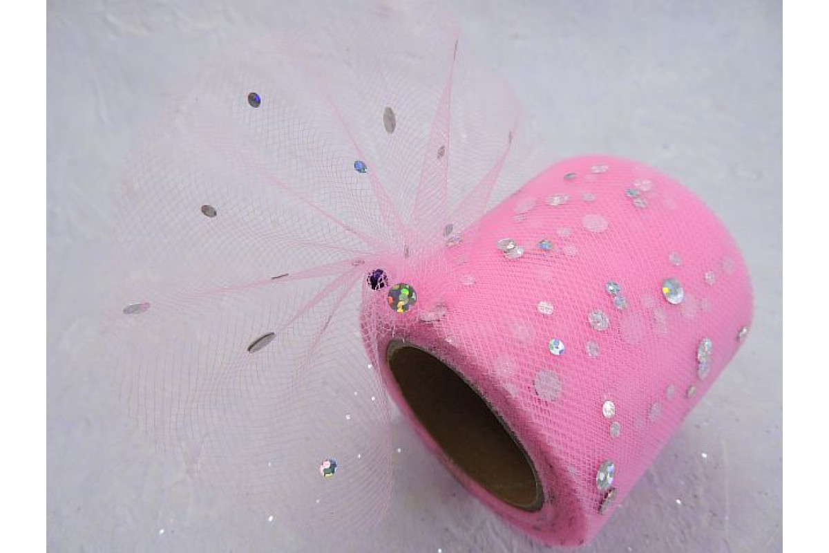 Фатин с пайетками 5, 5 см, цв. розовый - 1 м., 803-445, Китай, Фатин 5