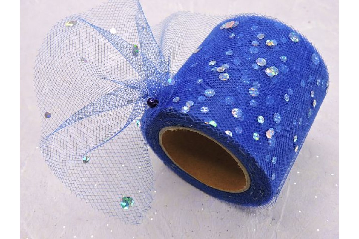 Фатин с пайетками 5,5 см, цв. темно-cиний - 1 м.