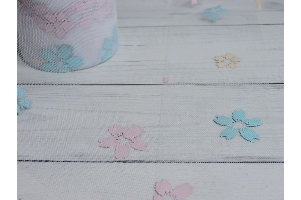 Фатин "Цветочки" 5, 5 см, цв. белый - 1 м., 803-556 но, Китай, Фатин 5