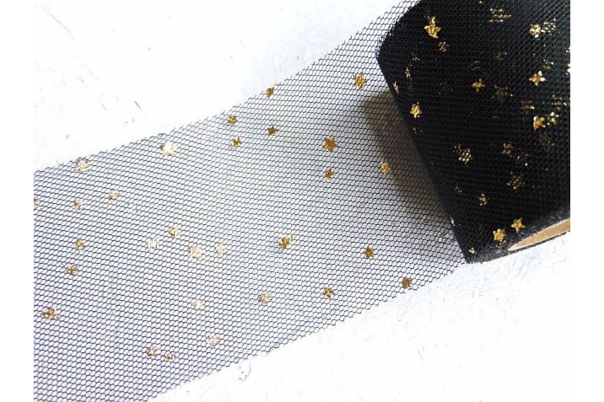 Фатин "Звездочки" 5,5 см, цв. черный/золото- 1 м.