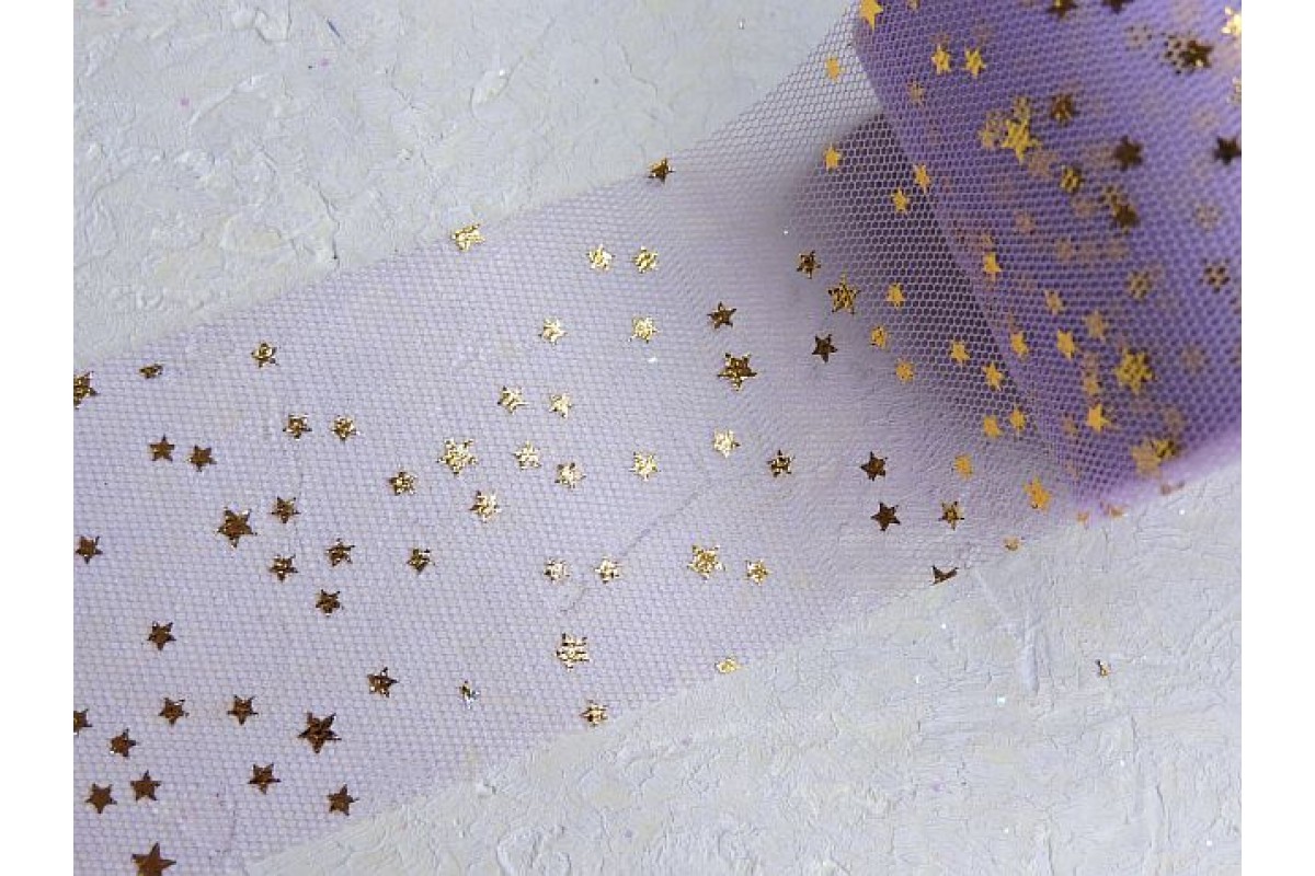 Фатин "Звездочки" 5, 5 см, цв. фиолетовый/золото- 1 м., 803-481, Китай, Фатин 5
