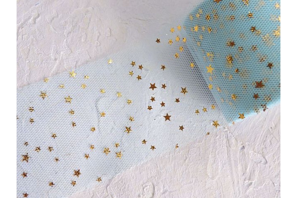 Фатин "Звездочки" 5, 5 см, цв. голубой/золото - 1 м., 803-475, Китай, Фатин 5