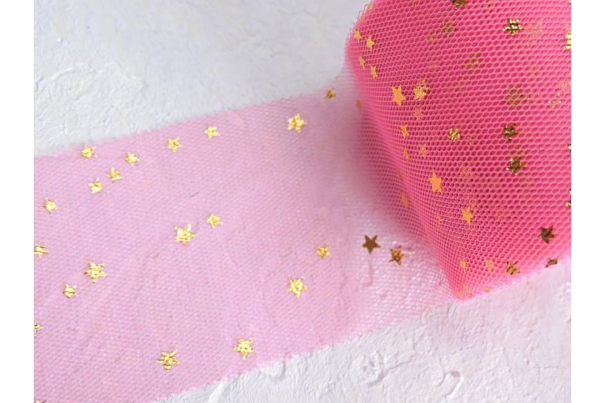 Фатин "Звездочки" 5, 5 см, цв. ярко-розовый/золото- 1 м., 803-483, Китай, Фатин 5