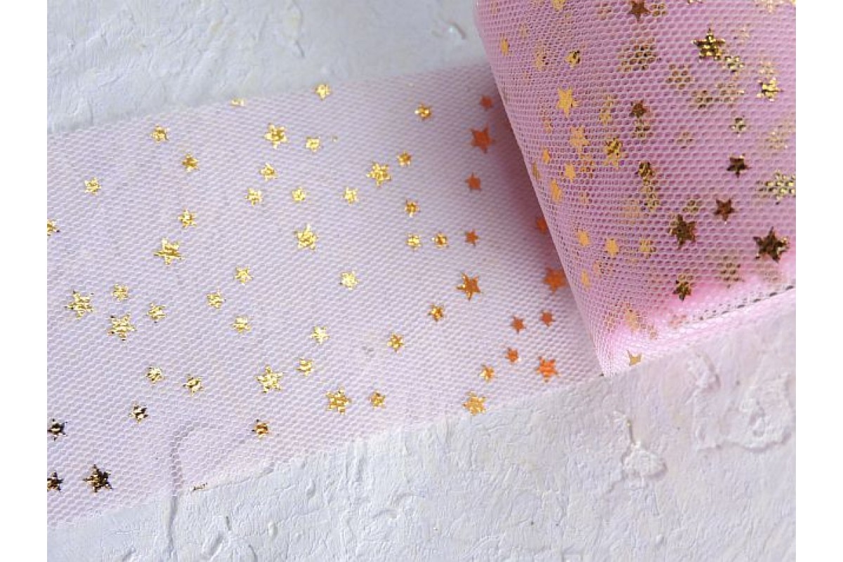 Фатин "Звездочки" 5, 5 см, цв. розовый/золото - 1 м., 803-478, Китай, Фатин 5