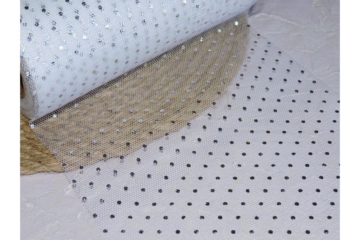 Фатин "Горошек", цв. белый/серебро - 1 м