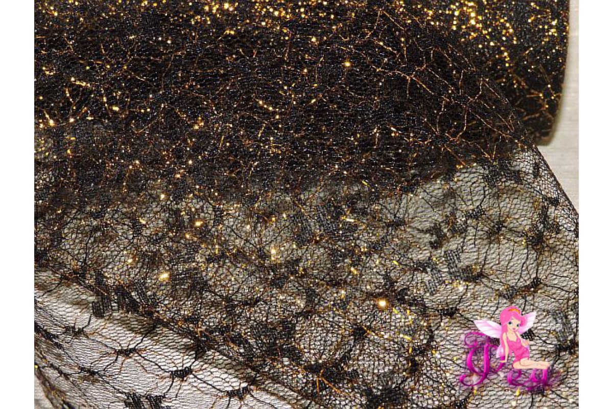 Фатин с люрексом, средняя жесткость, ширина 15 см, цв. черный с золотом ( отрез 1 м)