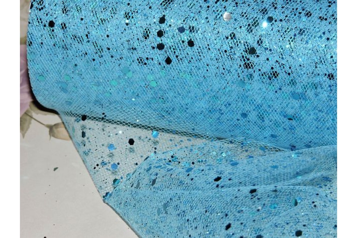 Фатин с пайетками 15 см*1м, цв. голубой, 803-138, Китай, Фатин