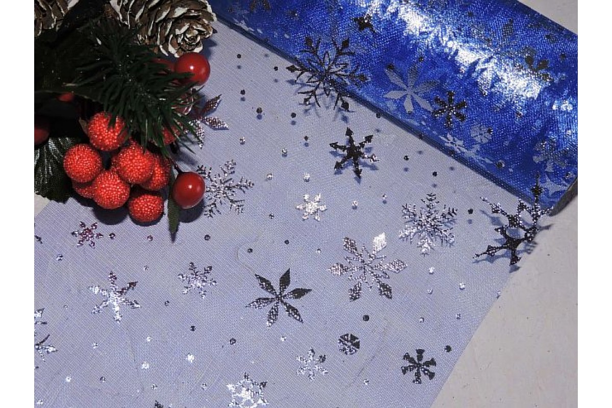 Фатин "Снежинки" 15 см, цв. синий/серебро - 1м., 803-376, Китай, Фатин