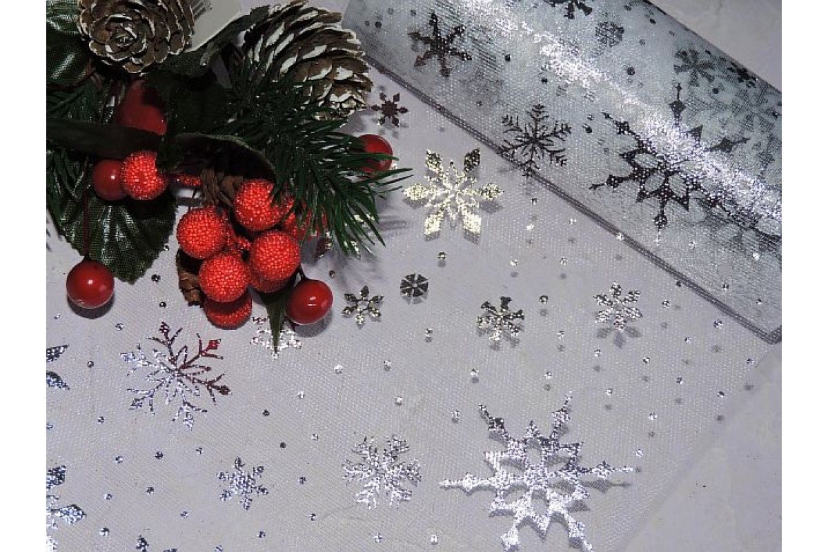 Фатин "Снежинки" 15 см, цв. белый/серебро - 1м.